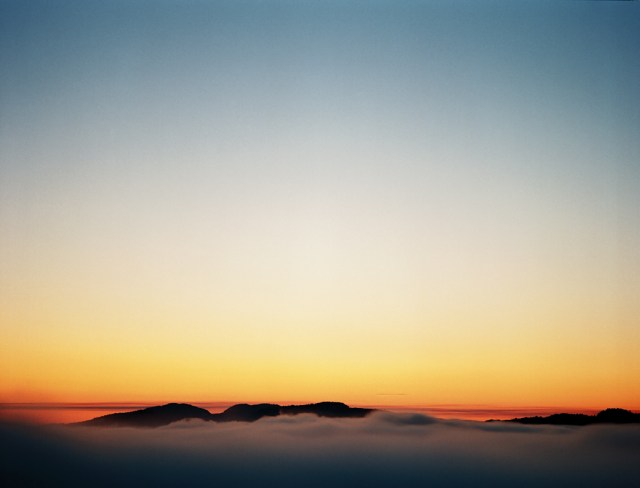 Looking east at dawn from Willisville Mountain towards Killarney Park and The Notch. Rhythm - pattern in the movements of nature. A 2008 analog photograph ( 41" X 29" ) in a series of 10 with eight prints remaining.