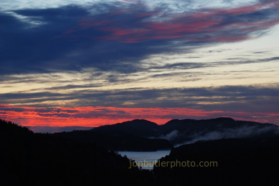 Looking east, at dawn, from Willisville Mountain with Cranberry Lake, The Notch and Killarney Park in the distance.