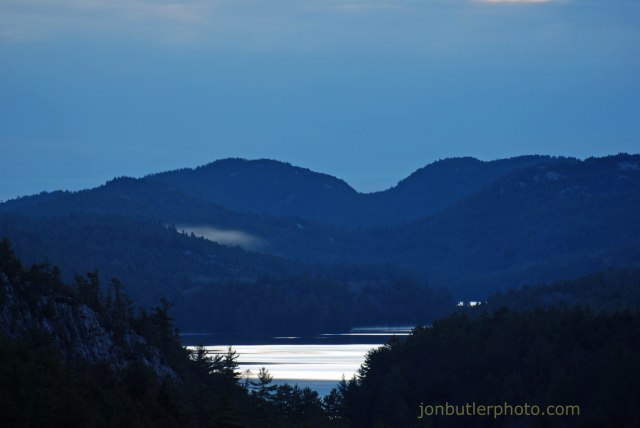 Looking east over Cranberry Lake, The Notch and Killarney Park from Willisville Mountain before sunrise on Saturday, October 27, 2012. Just above 0c and no birds or animals…a change is in the air.